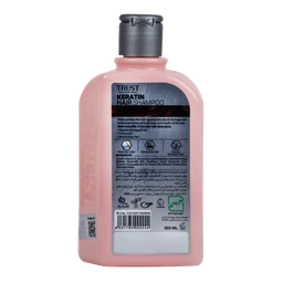 شامپو سر کراتین تراست، با دارا بودن کراتین و ویتامین E، با نرم کردن مو و کمک به استحکام ساختاری آن، مانع از شکستگی و آسیب تارهای مو میشود. این شامپو ضمن رفع وزی تارهای مو، به تثبیت رنگ، ترمیم و افزایش ضخامت مو کمک میکند.
