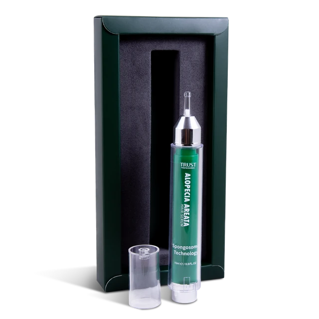 ریزش سکه ای بیماری است که به دلیل نقص سیستم ایمنی ایجاد شده و منجر به ریزش موها در نواحی مختلف بدن به ویژه در ناحیه سر و صورت از جمله ریش و سبیل میشود. ریزش سکه ای همانطور که از نام آن مشخص است در نواحی کوچک و به صورت سکه ای ایجاد شده و ممکن است به فرم خفیف تا پیشرفته افراد مختلف را درگیر کند. بهبود بیماری و برطرف شدن علایم در افراد مختلف متفاوت است و به شدت بیماری و نوع محصولات مراقبتی مورد استفاده بستگی دارد. یکی از راهکارهای اصلی برای بهبود علایم ریزش سکه ای و بهبود ریزش مو استفاده از محصولات مراقبتی و سرمهایی است که به رشد مجدد موها کمک کرده و از پیشرفت ریزش مو جلوگیری میکنند. سرم بهبود دهنده ریزش موی سکه ای تراست، با دارا بودن تکنولوژی منحصر به فرد اسپانجوزوم، به طور موثری نفوذ ترکیبات موثره ضد التهاب و محرک رویش مجدد فولیکول های مو را به سلولهای پوست سر افزایش داده و به طور چشمگیری موجب بهبود رشد فولیکول و تحریک رشد موها در این ناحیه میشود. این محصول فاقد ماینوکسیدیل و الکل بوده و ترکیبات موثره مورد استفاده در آن، فولیکول های مو را تغذیه و خونرسانی کرده و با ترمیم فولیکول های آسیب دیده، به از بین بردن و بهبود ریزش سکه ای مو کمک میکنند.