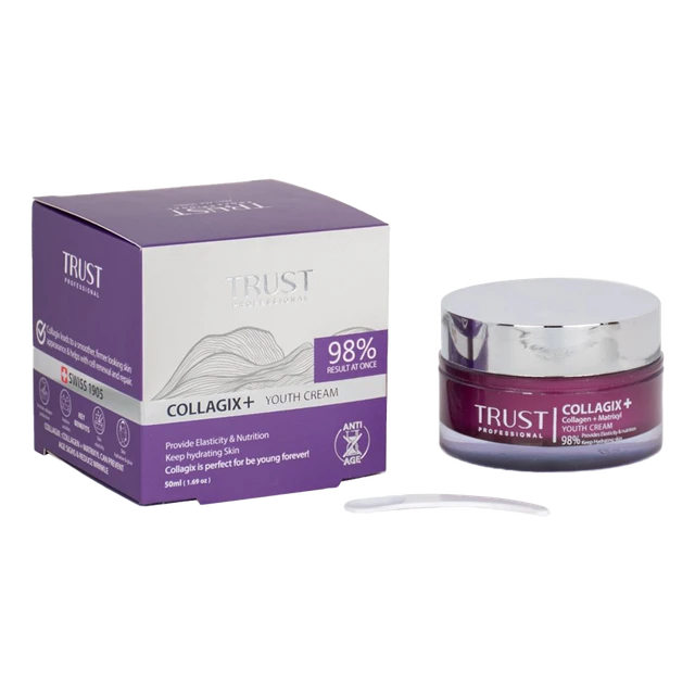 و در نهایت، پلی پپتاید آرژینین و لایزین موجود در کرم جوانساز کلاژن تراست، از ایجاد چینوچروک در پوست جلوگیری کرده و به حفظ شادابی و سلامت پوست کمک میکند. در کنار مواد مؤثره مطرحشده، این محصول تراست، با عصاره دانه لوپینوس آلبوس، به حفظ استحکام و افزایش خاصیت کشسانی پوست، با آسپارلین، به بهبود سوختوساز سلولهای پوستی و تکثیر آنها، با روغن آووکادو، به حفظ استحکام و پایداری پوست و با هلیانتوس آنوس سید اویل، به بهبود آبرسانی و جلوگیری از پیری پوست، کمک میکند.