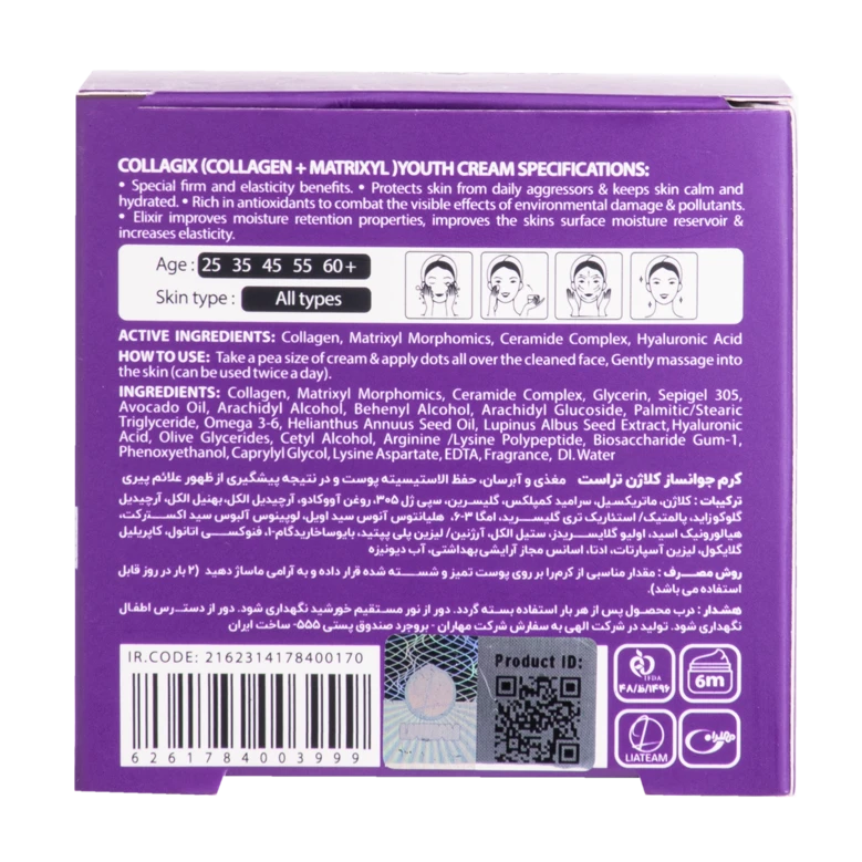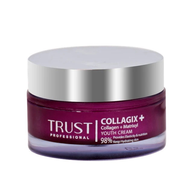 و در نهایت، پلی پپتاید آرژینین و لایزین موجود در کرم جوانساز کلاژن تراست، از ایجاد چینوچروک در پوست جلوگیری کرده و به حفظ شادابی و سلامت پوست کمک میکند. در کنار مواد مؤثره مطرحشده، این محصول تراست، با عصاره دانه لوپینوس آلبوس، به حفظ استحکام و افزایش خاصیت کشسانی پوست، با آسپارلین، به بهبود سوختوساز سلولهای پوستی و تکثیر آنها، با روغن آووکادو، به حفظ استحکام و پایداری پوست و با هلیانتوس آنوس سید اویل، به بهبود آبرسانی و جلوگیری از پیری پوست، کمک میکند.